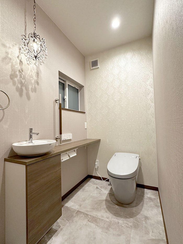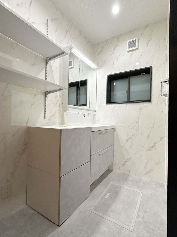 浴室:LIXIL リデア 洗面化粧台:LIXIL クレヴィ 間口750mm(色:ユイレグレー) トイレ:LIXIL サティスS 手洗い器:LIXIL キャパシア Mサイズ 窓:LIXIL サーモスⅡ-H |